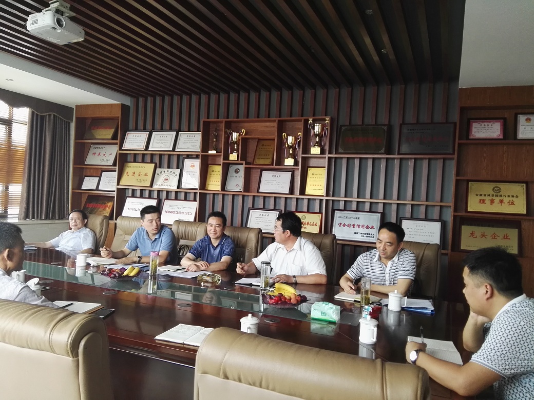 2018年6月8日合肥市工商局党组成员、纪检组长徐瑜、企业注册局局长孙瑞国等一行在肥西市场监管局局长解宾启等同志的陪同下来集团考察调研,考察调研的主题是了解企业在生产经营过程中存在的困难和需要解决的问题。