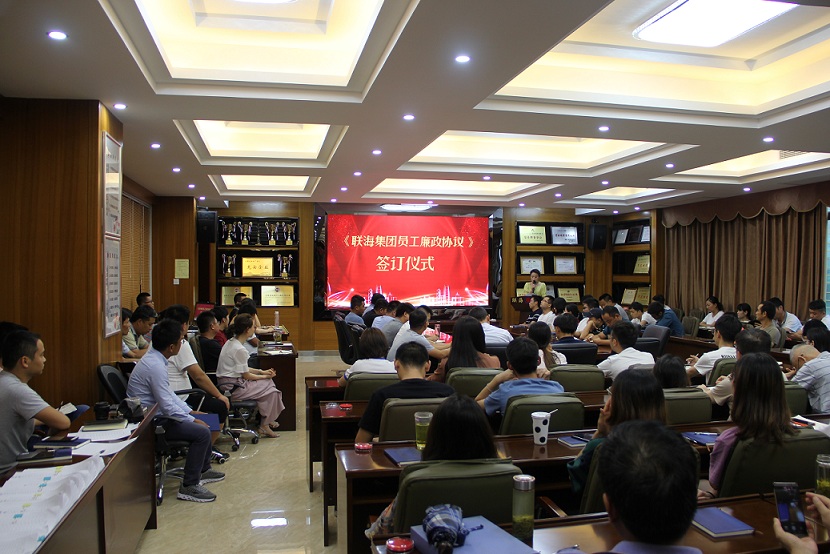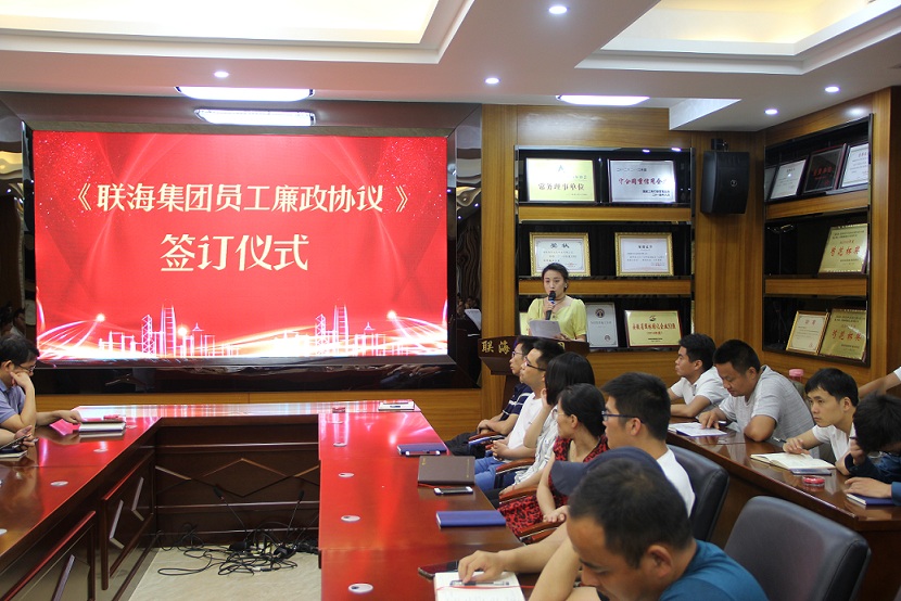 为加强集团廉政建设,严肃工作作风,构建诚信体系。7月12日,集团公司举行了员工廉政协议签订仪式,集团董事长、各版块分管领导等全体联海同仁分别签订了《联海集团员工廉政协议》。