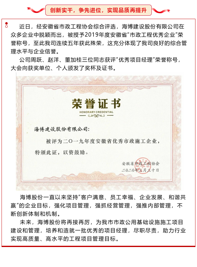 创新实干,争先进位,实现品质再提升