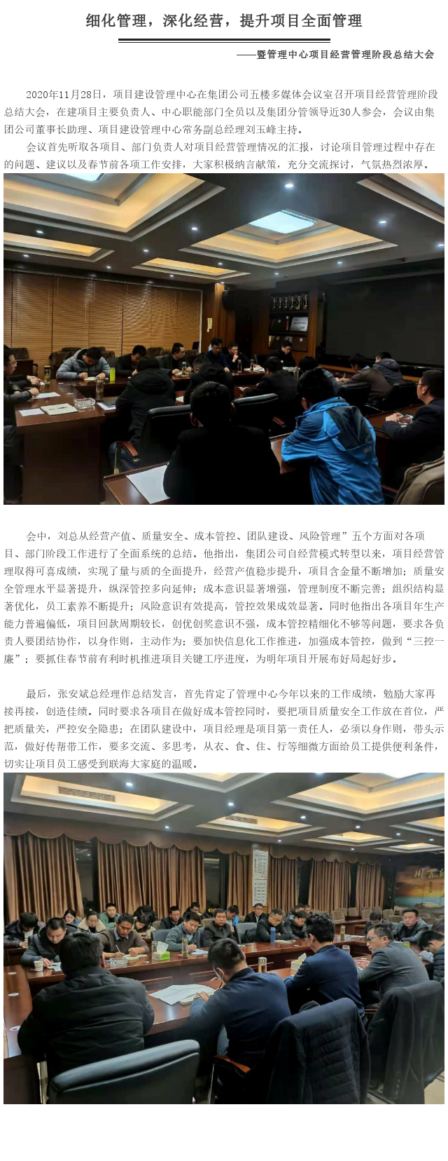 细化管理,深化经营,提升项目全面管理