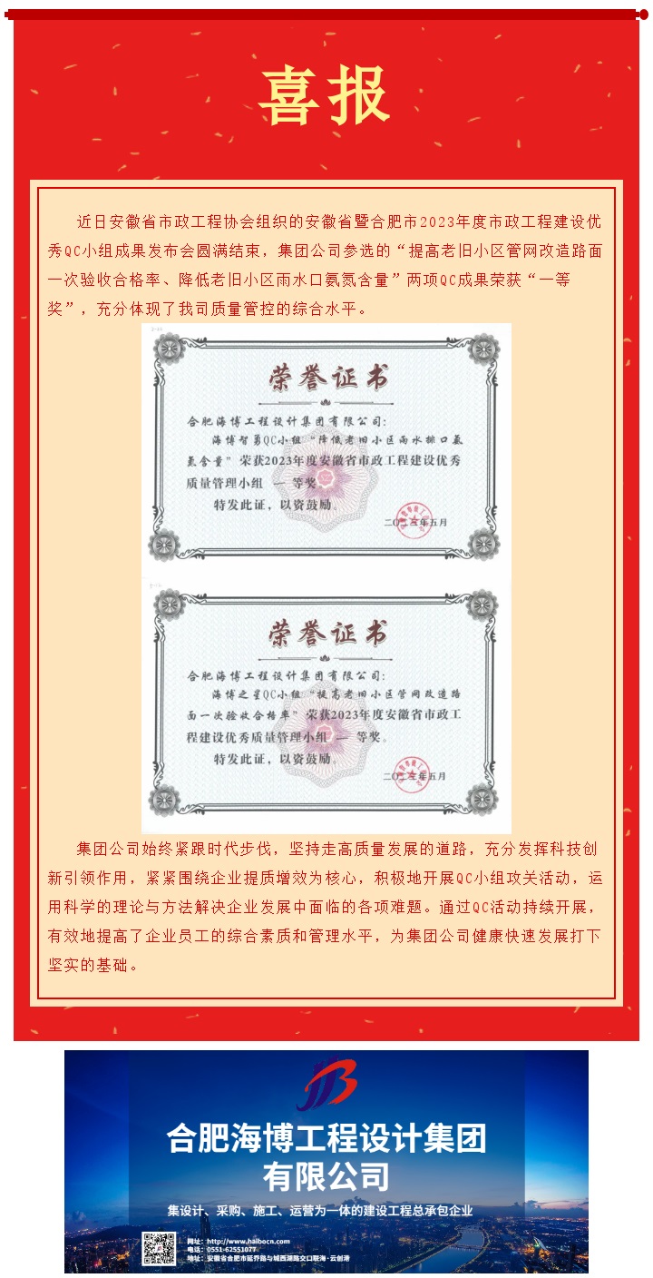 3377集团官网(中国)官方网站集团获安徽省市政工程建设QC小组成果一等奖